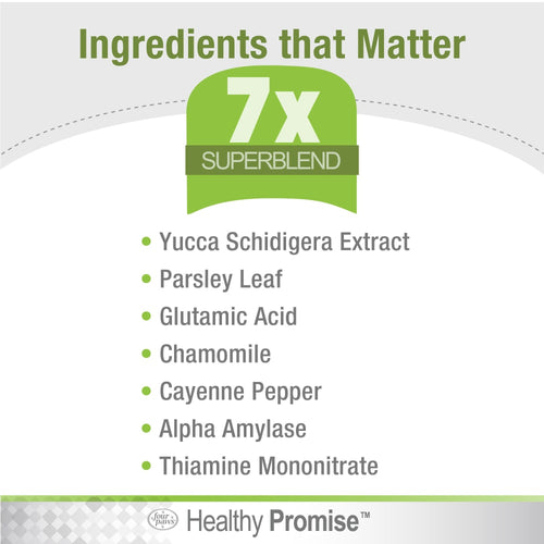 Four Paws has been helping pet parents and four-legged family members flourish together for 50 years. Driven by the passion to keep our furry best friends thriving happily, Healthy Promise supplements and healing & care products help provide our pets a healthy, active, and fulfilling life. Potty Mouth coprophagia deterrent is created to deter your pet from eating stool. These chewable coprophagia tablets feature a 7x SuperBlend with ingredients including Yucca Schidigera Extract to reduce stool odor, Cayenne Pepper to make stool unattractive, Parsley Leaf, and Glutamic Acid. This stool eating deterrent for dogs proudly carries the National Animal Supplement Council (NASC) Seal, which is earned for complying with stringent quality control standards and much more. Add Healthy Promise USA-made pet supplements to your furry friend's daily routine!