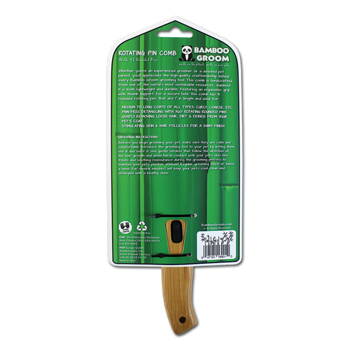 Designed for longer coats, this Rotating Pin Comb has 41 rounded pins that are 1” in length. They rotate to help detangle long, curly and coarse fur gently and easily. They’ll also remove dirt, debris and loose hair.