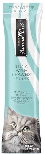 Fussie Cat Tuna with Prawns Purée is love at first lick. Creamy in texture and rich in taste, this indulgent, flavorsome puree will make even the Fussiest of Cats demand more! Fussie Cat Tuna with Prawns Purée is an easy-to-feed cat treat with essential vitamin E for your cat’s diet to support healthy skin and coat.
